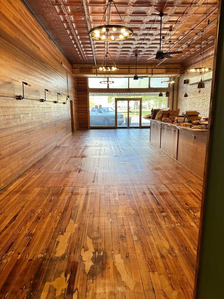 Today the 120-year-old building is nearing completion, featuring a stunning copper-colored, stamped metal ceiling that pays homage to the building’s rich past.