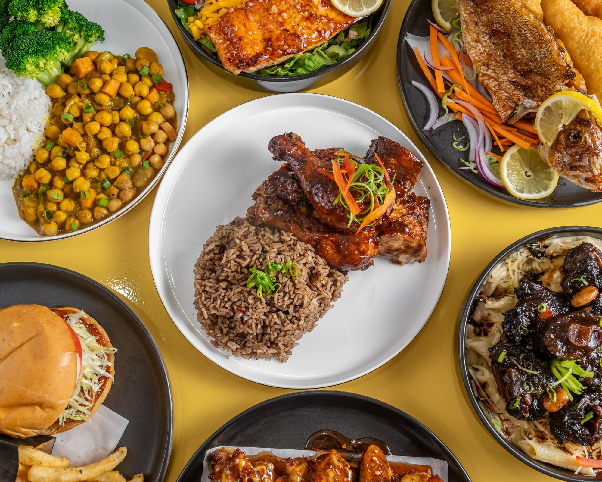 Menu staples include oxtail, jerk chicken and honey garlic salmon. The fusion approach extends to pasta dishes such as honey garlic salmon pasta, oxtail pasta and jerk chicken pasta, along with wings and shrimp.