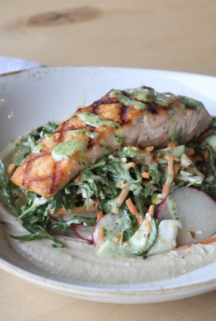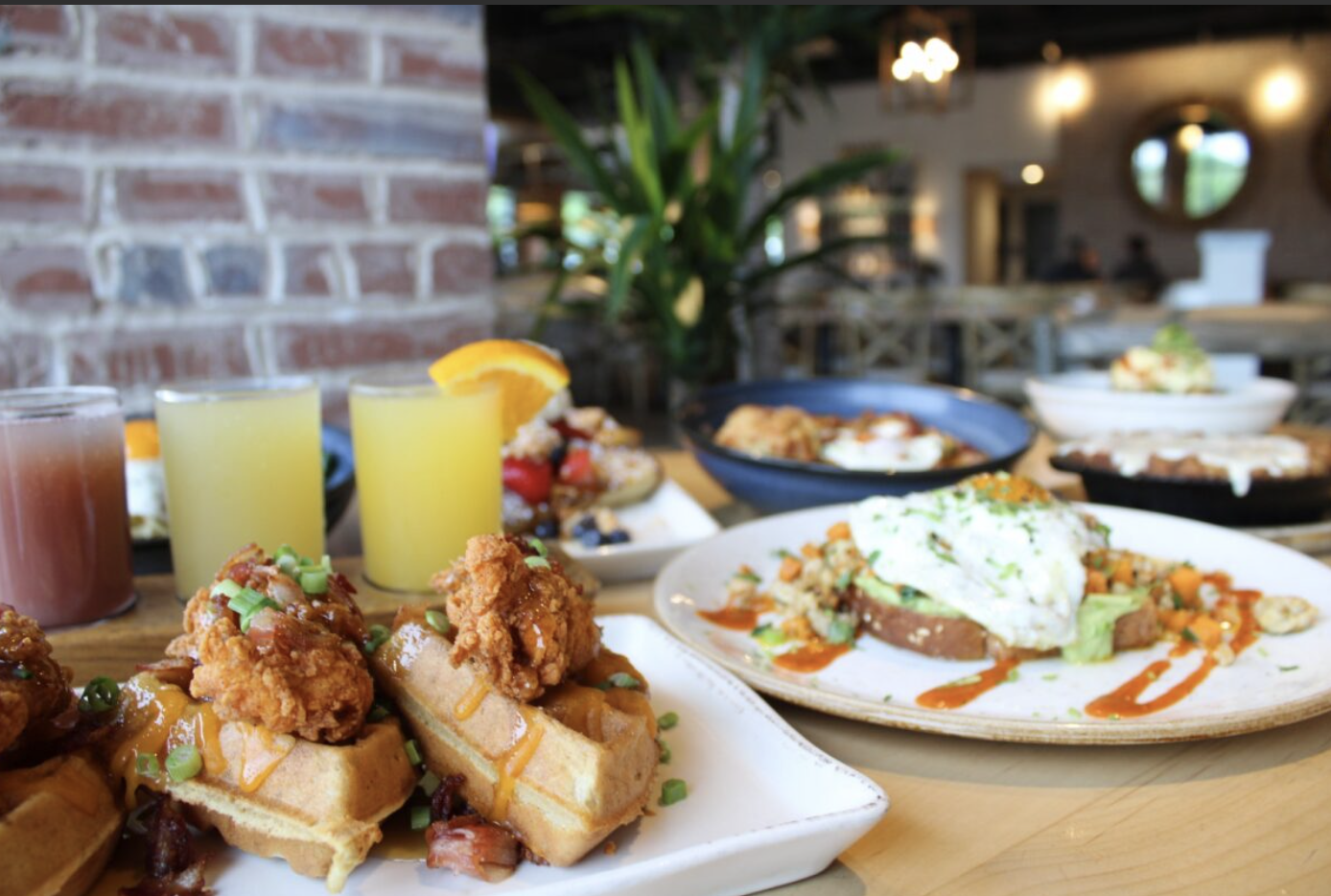 One of the restaurant’s standout items is its house-made cheddar scallion biscuits baked in a skillet with cheddar, scallions, and butter, topped with turbinado sugar and served with honey butter. O’Malley said about 66 percent of tables order them. The team also plans to offer its weekend “cinna biscuit” with cinnamon-brown sugar filling and vanilla cream cheese icing.