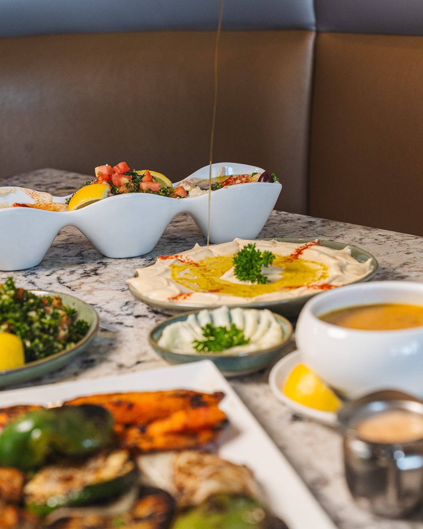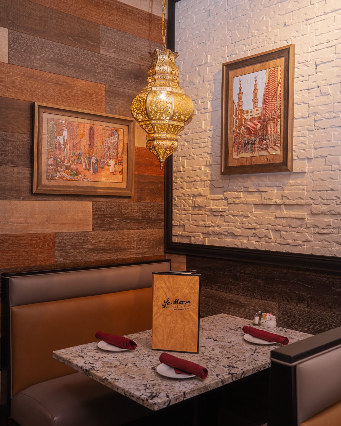 La Marsa serves a broad Mediterranean menu with Halal options. Signatures include lamb chops—New Zealand cuts marinated for 72 hours—along with house-made pita, hummus and a hearty lentil soup.