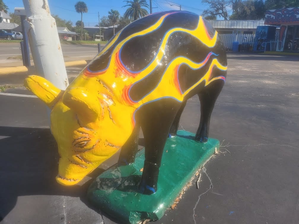 A pig-themed promotion is planned, featuring a “name the pig” contest tied to a custom-painted pig statue, with the winner receiving a free platter.