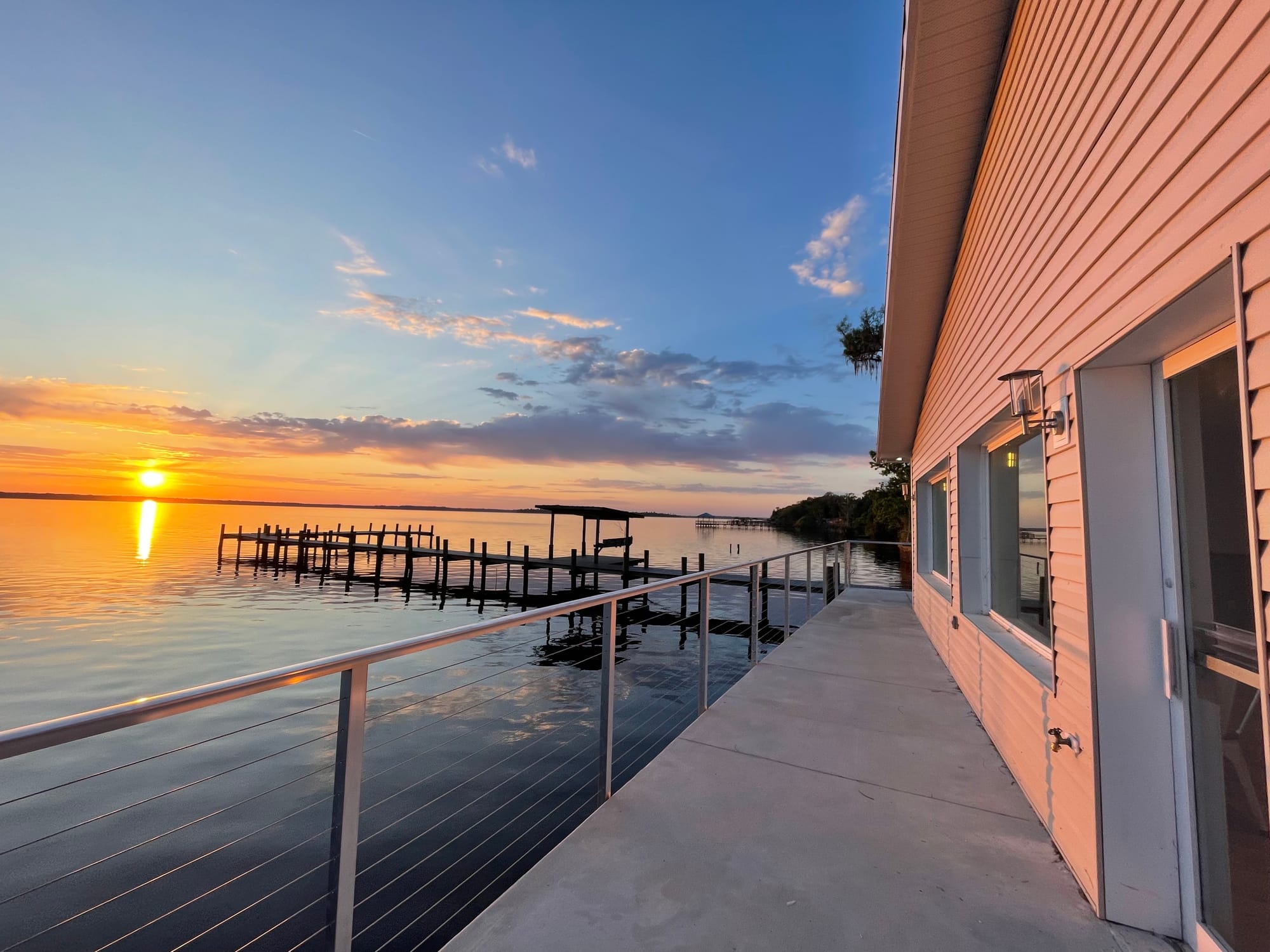 A glass-front dining room overlooks Crescent Lake, offering water views from inside the restaurant as well as from the outdoor seating areas. A full bar with liquor and a dedicated cocktail menu will also be part of the experience.