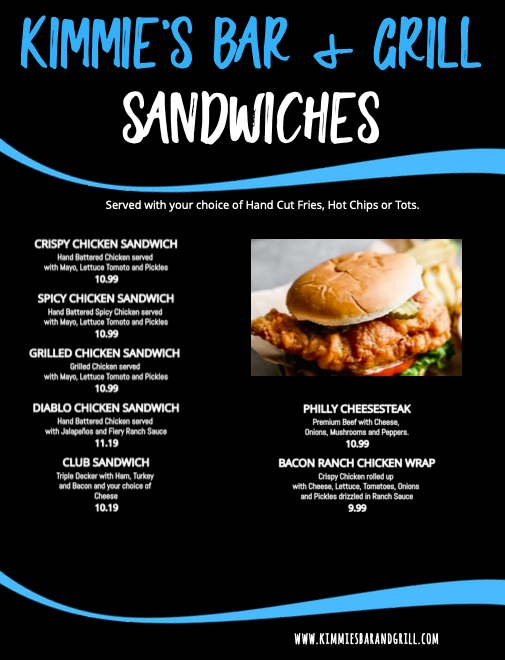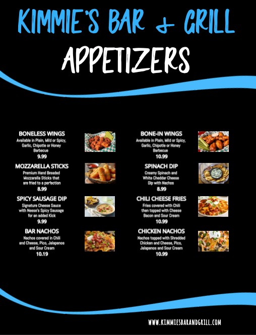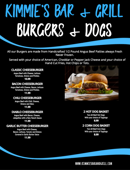 Menu courtesy of Kimmie's Bar and Grill
