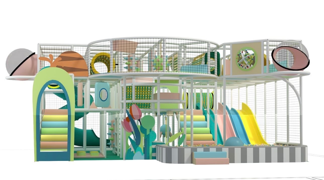Sprout + Play will combine an indoor playground with open seating for parents. The main attraction is a three-story playground system with obstacles, slides, a ball pit and other interactive elements, designed for young children.